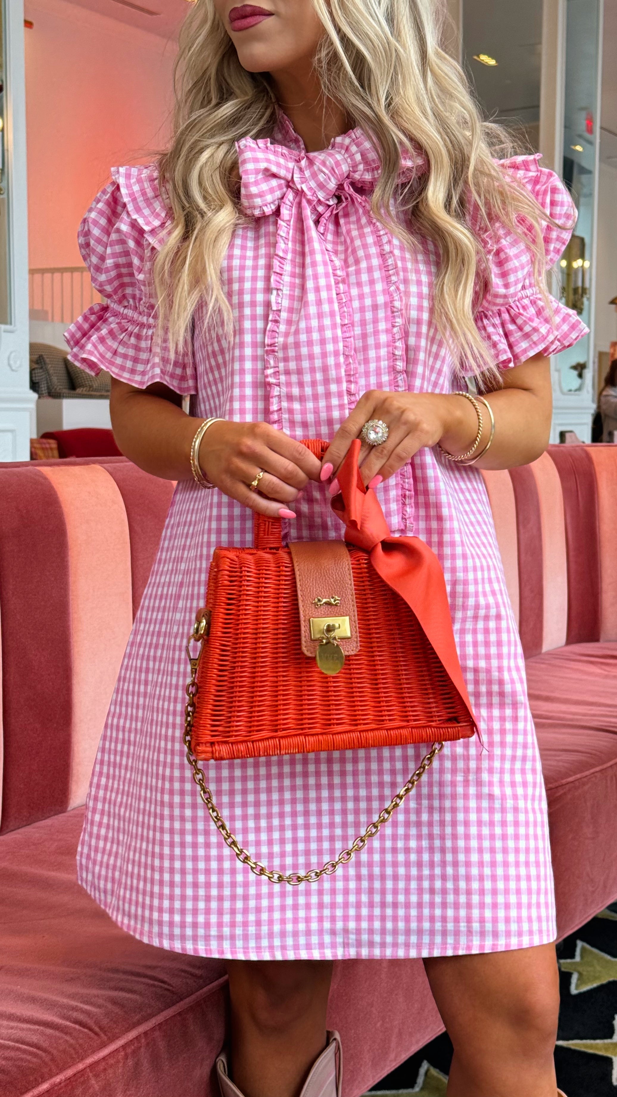 Josie shift dress in hot pink gingham