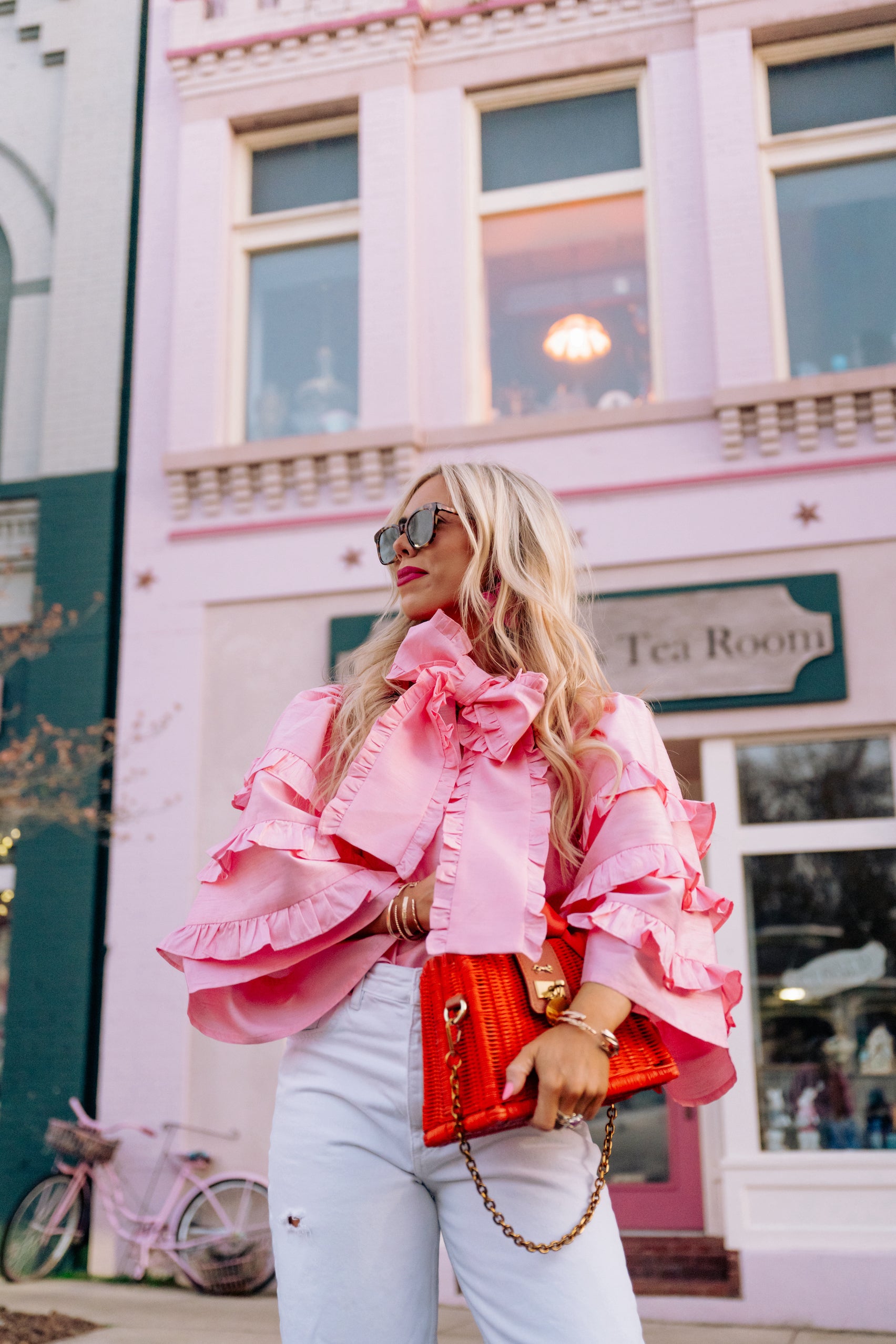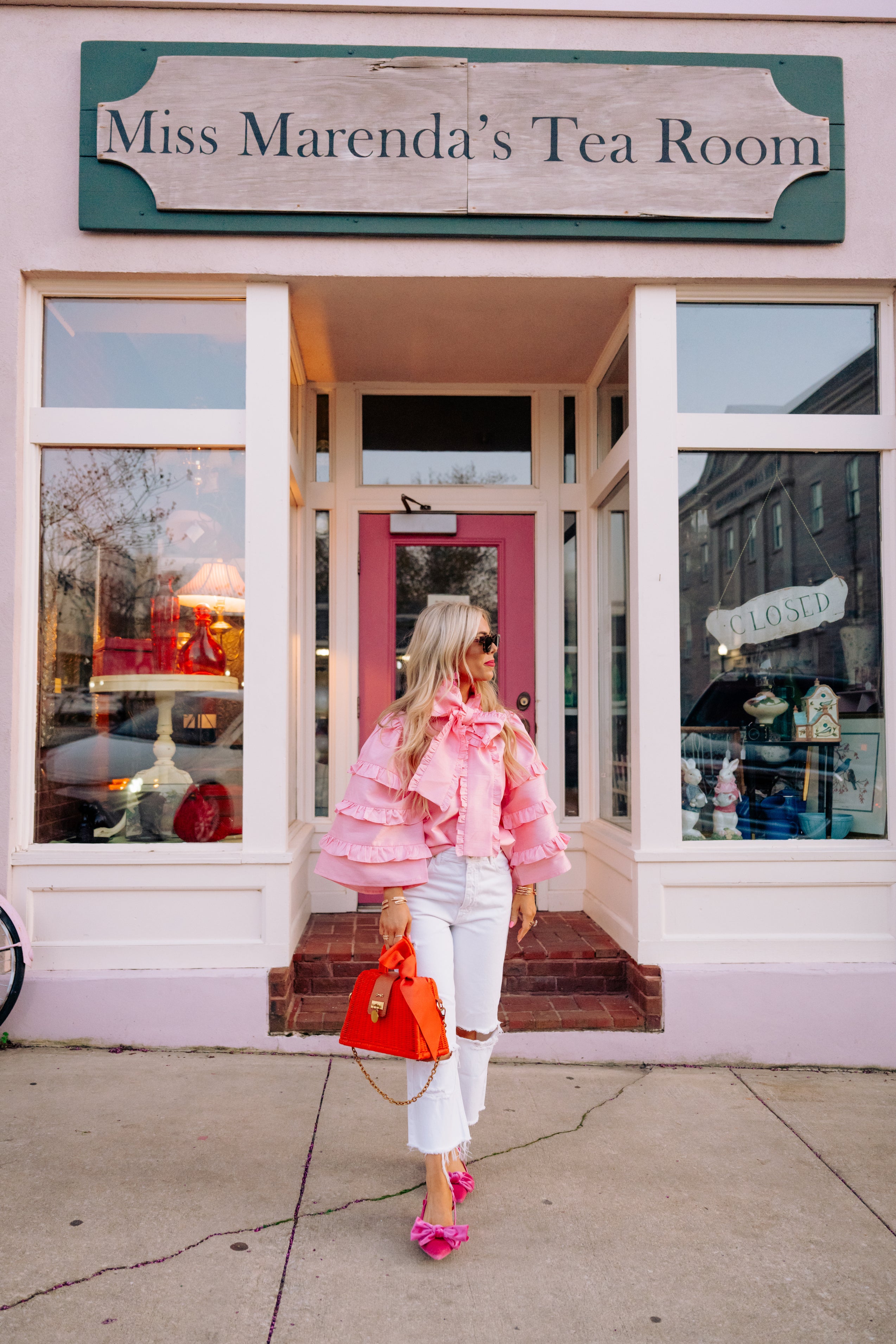 We are so happy to bring back the best-selling ruffled bow top from EWD, the Josephine top! With the unique sleeves and the ruffled bow neckline, this top is the perfect blouse to make a sweet, southern statement all year round! Pair with your favorite pants for the perfect outfit for any occasion!