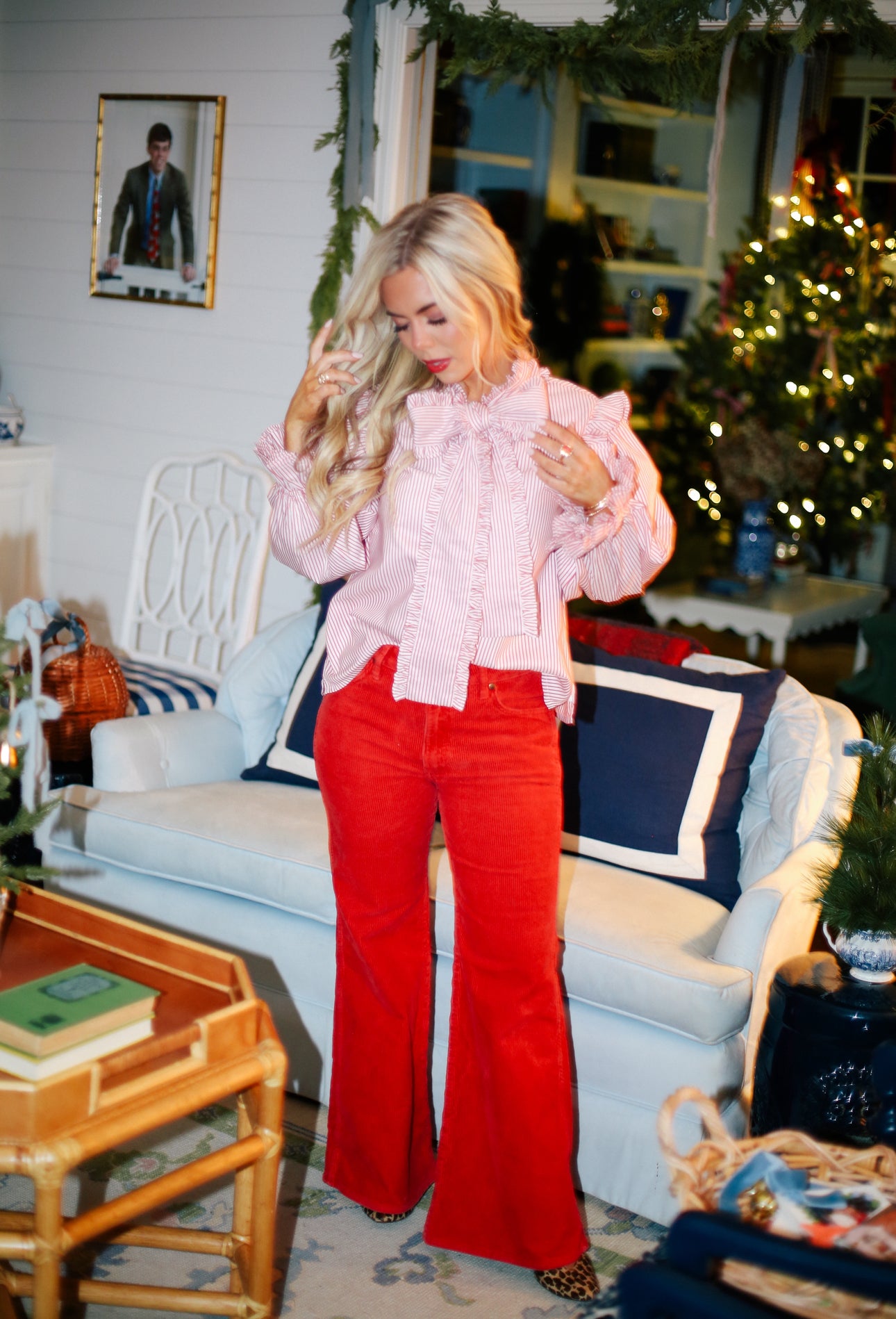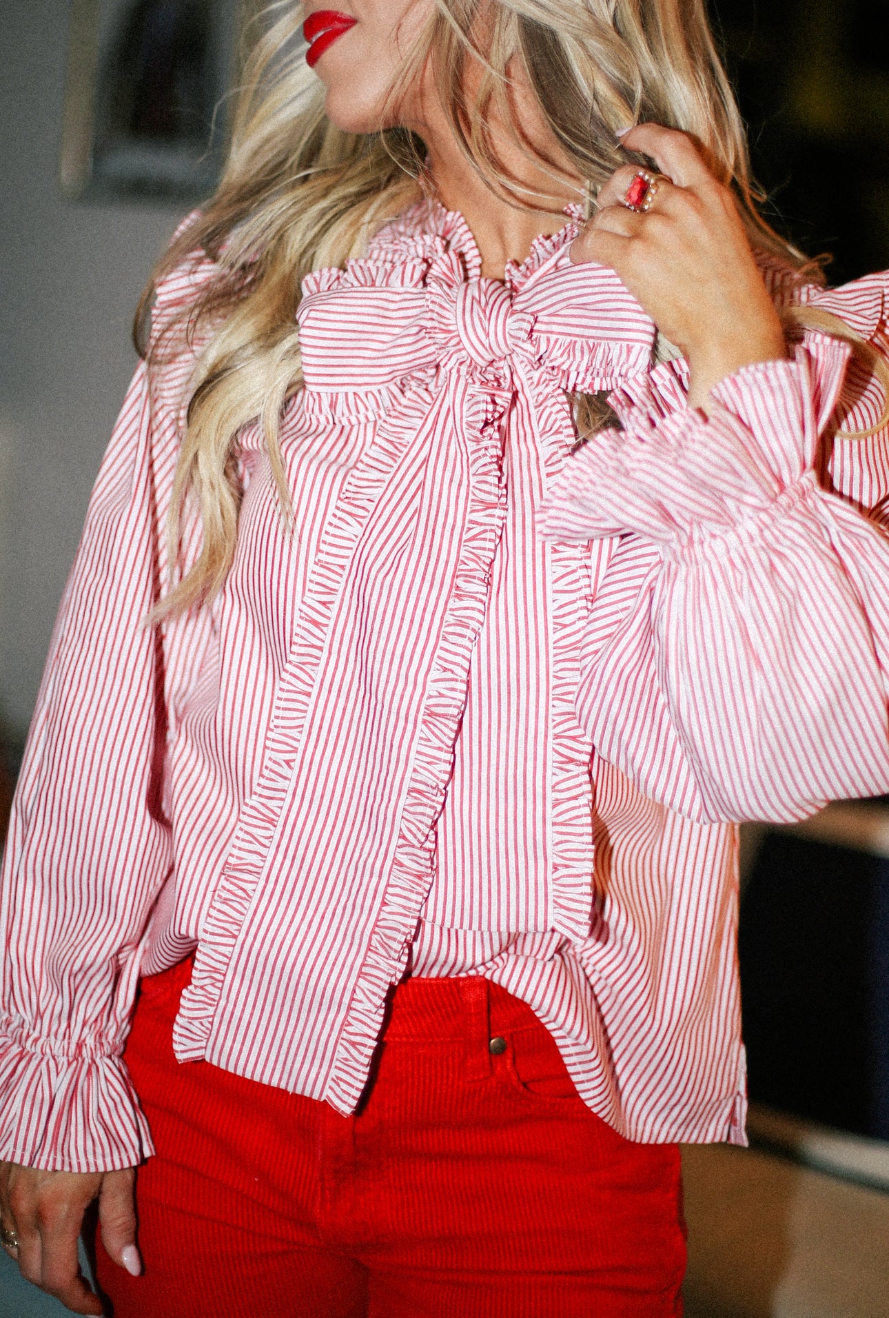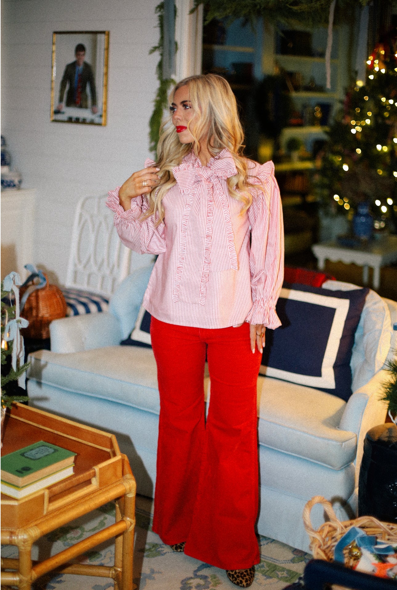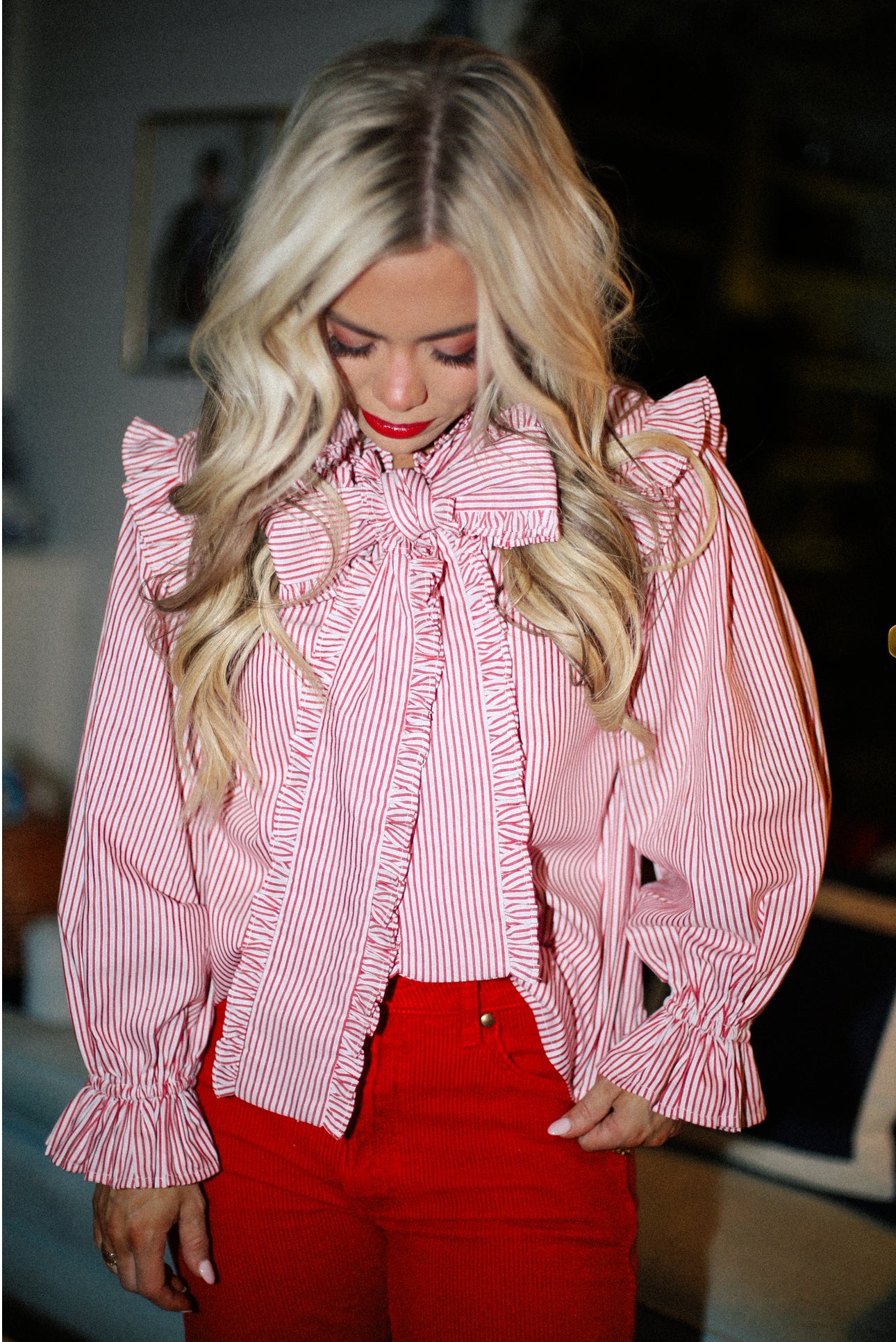Bringing back our best selling ruffled bow top from EWD, the Josie Mae top! With the unique ruffled sleeves and the ruffled bow neckline, this top is the perfect blouse to make a sweet, southern statement year round! This top pairs perfectly underneath our Vivienne vest and our Juliette jacket!