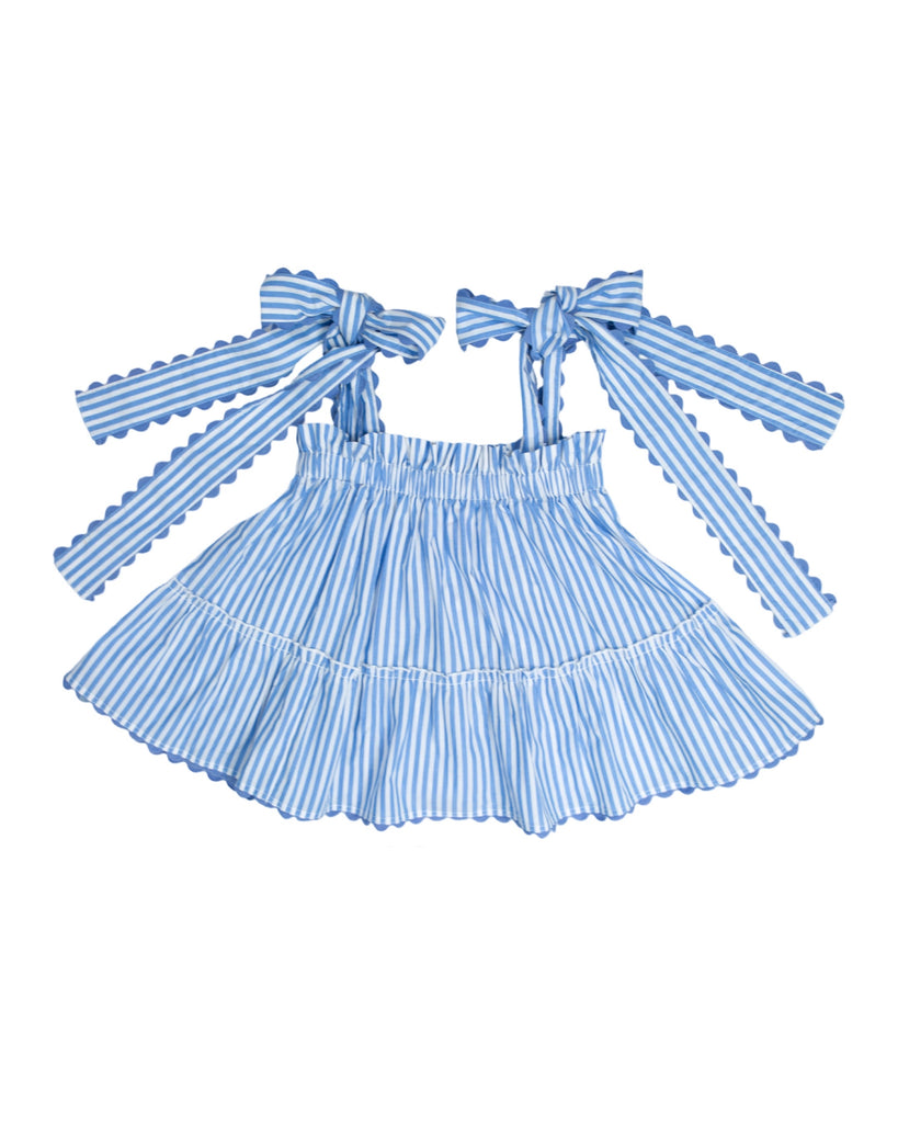 Introducing the newest pajama set from EWD, the Annie set! This ruffle and ric rac adorned matching set is the most comfy set to wear year-round! Made of a soft and breathable fabric, this set features the most darling ruffled wide-leg pants and tiered ruffle top with ric rac straps that tie into the perfect bow shoulder ties!