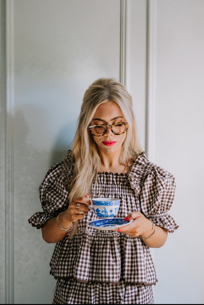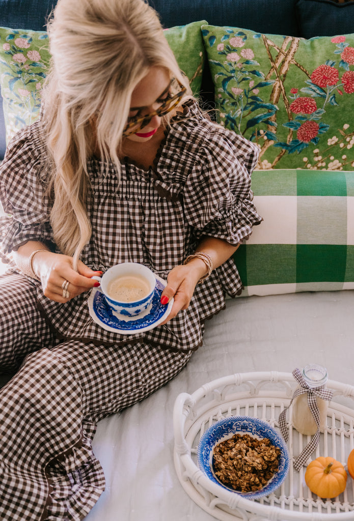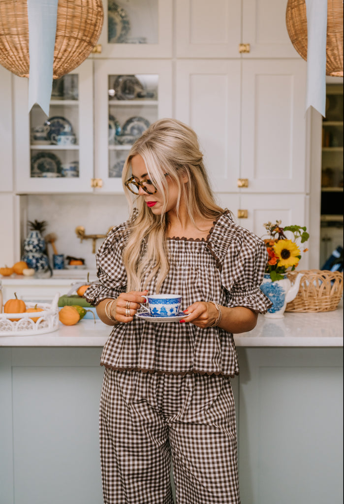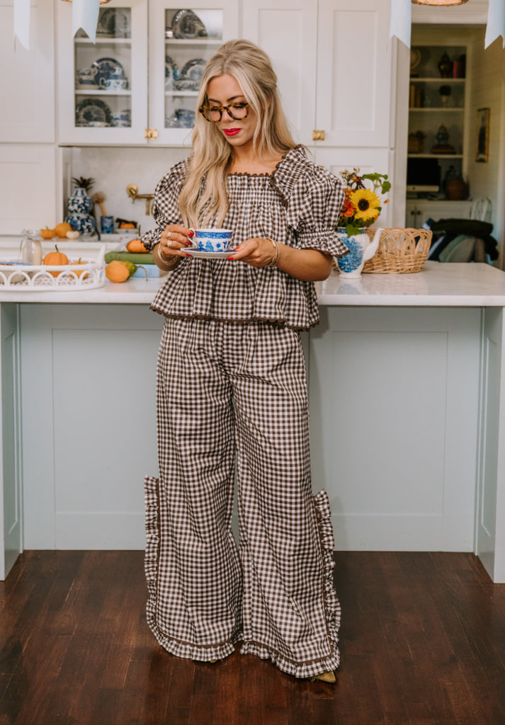 Polly Pajama Set in chocolate gingham