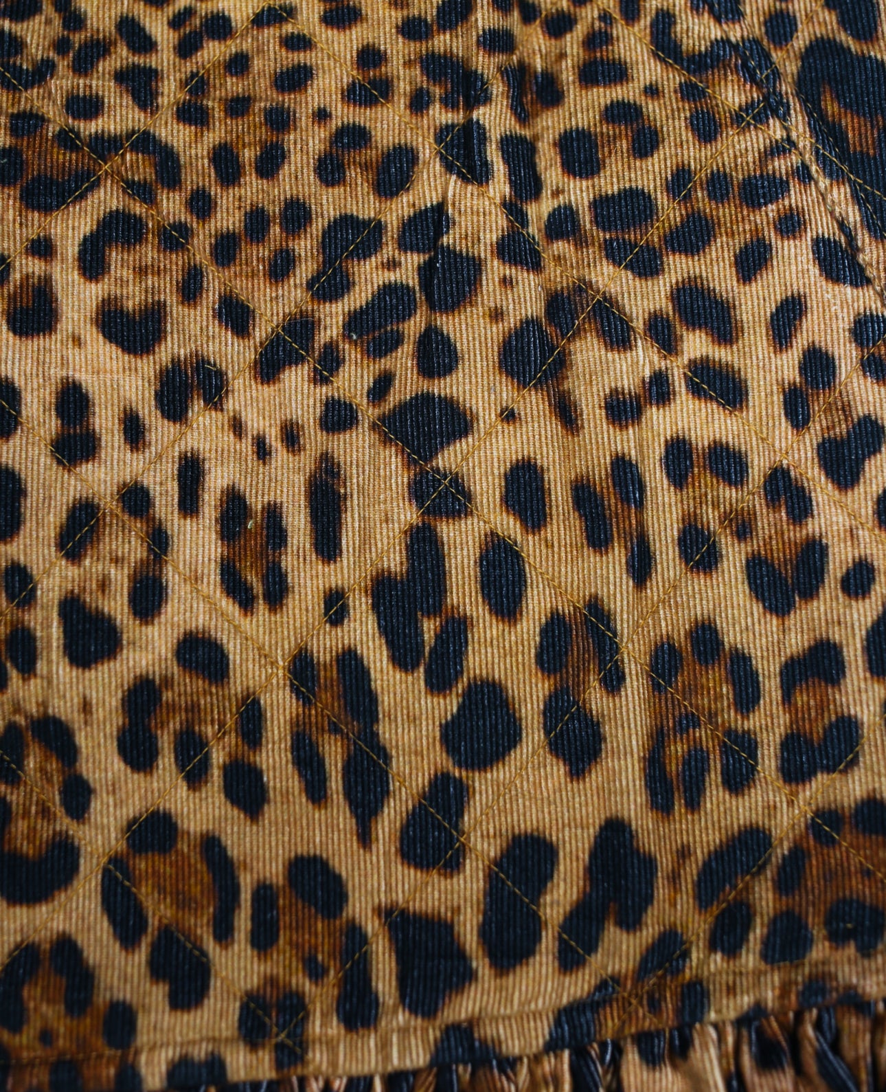 Tan, brown, and black printed leopard corduroy fabric.