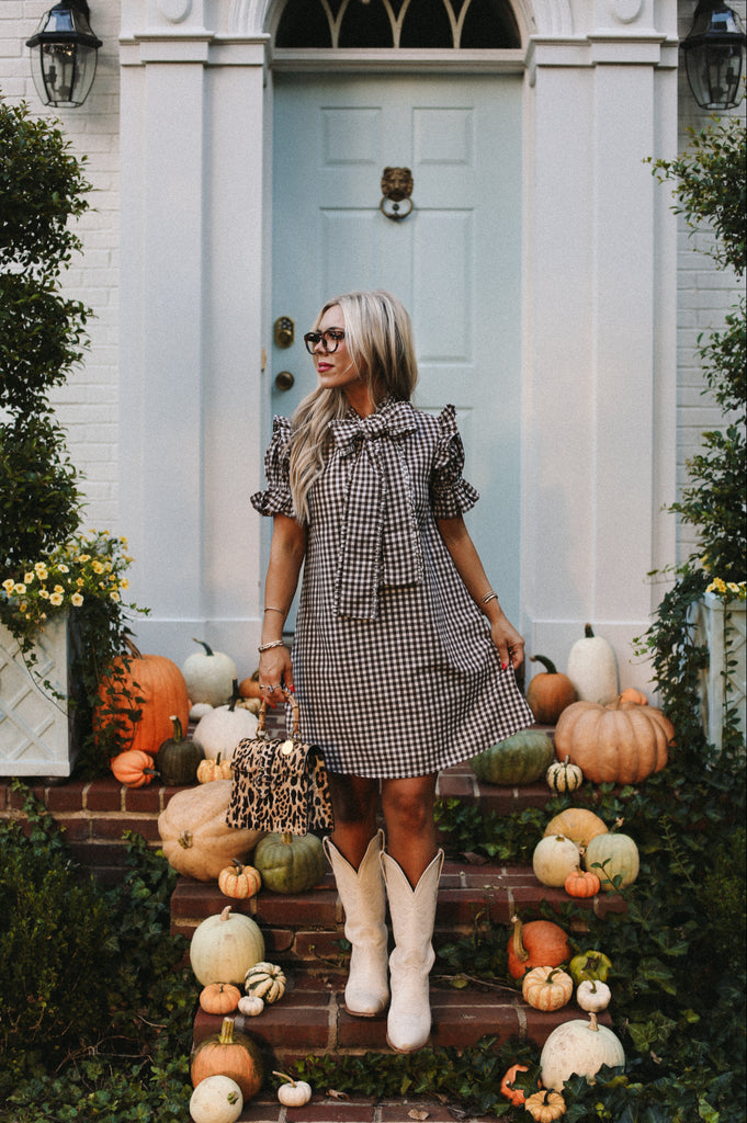 Our sold-out Josie shift is returning- this time in our new chocolate gingham fabric, perfect to wear all season long!